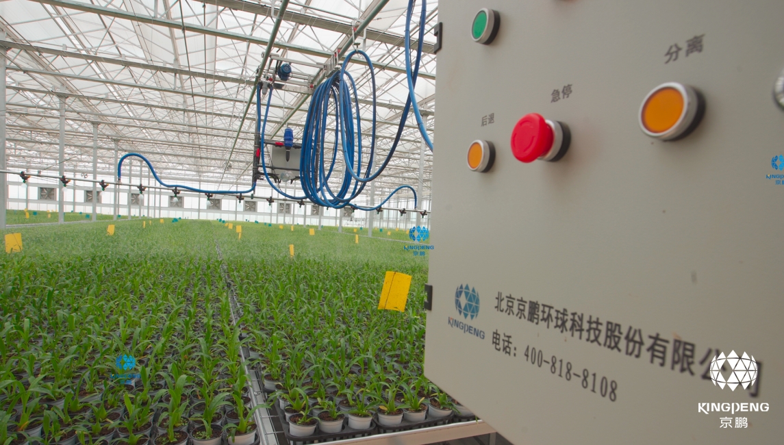 Beijing Kingpeng International Hi-Tech Corporation (Kingpeng) has independently researched, developed and innovated a special sprinkler machine for greenhouses with automatic transfer function and obtained relevant patents. The mobile automatic sprinkler machine is equipped with micro sprinkler heads on the sprinkler machine that can run along the track. With the movement of the main machine of the sprinkler machine, it can realize walking - type sprinkling irrigation, and can achieve irrigation across different spans in the greenhouse through the transfer device. It has the advantages of small size, light weight, water and energy saving, convenient operation, economy and practicality, and improving the utilization rate of the greenhouse. It is mainly applied in greenhouses for seedling raising, flowers, leafy vegetables, etc. At present, it has been widely used in many domestic and foreign projects of Kingpeng such as the Shandong flower production greenhouse project, the Jiangsu rose greenhouse project, the Yunnan orchid greenhouse project, the Australian seedling greenhouse project in recent years.