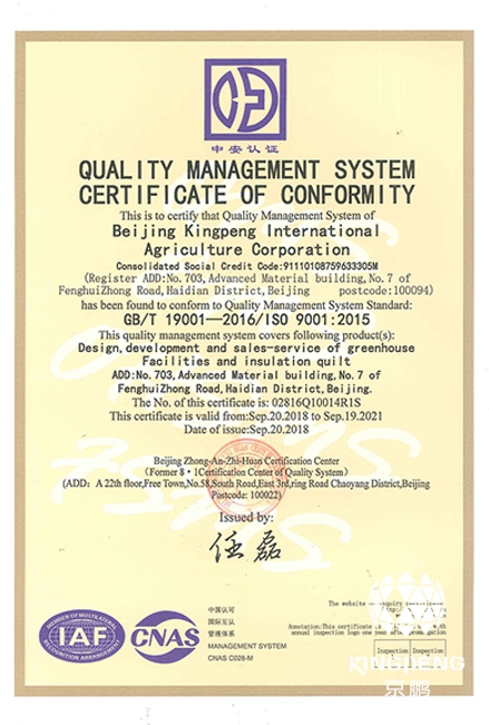 С 1950-х годов, Kingpeng начался заниматься сельским хозяйством более 60 лет. После долгой истории развития и сильных научно-исследовательских возможностей и богатого эксперимента на различных типах теплиц, Kingpeng стала единственной зарегистрированной тепличной компанией на фондовом рынке Китая и экспортируется в более чем 50 стран!